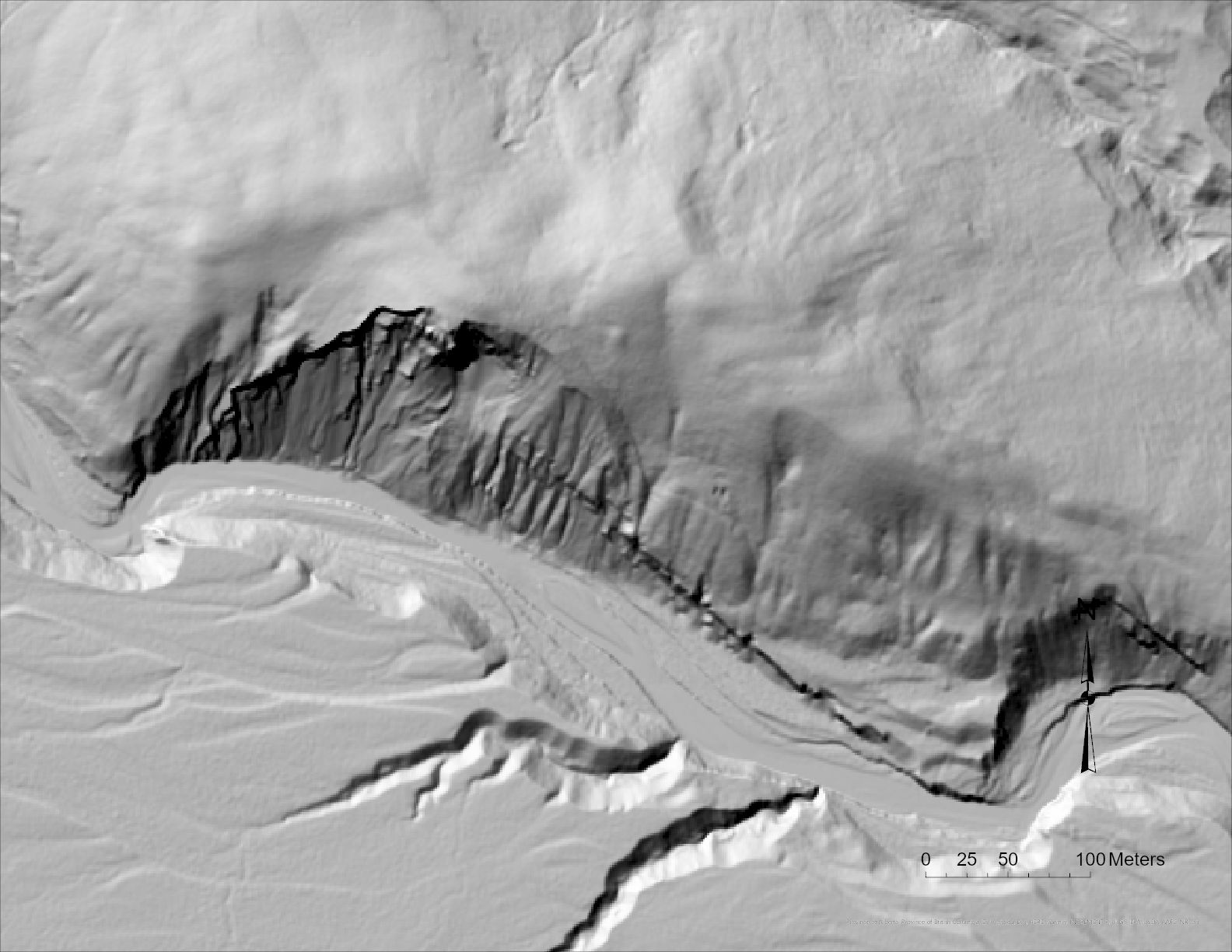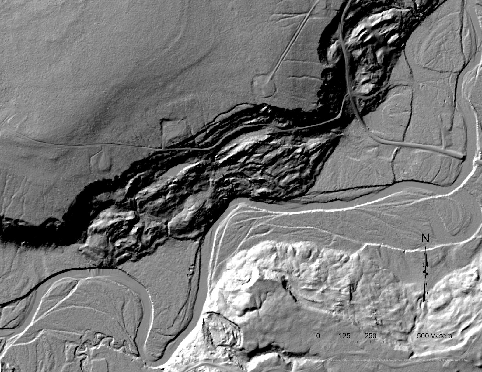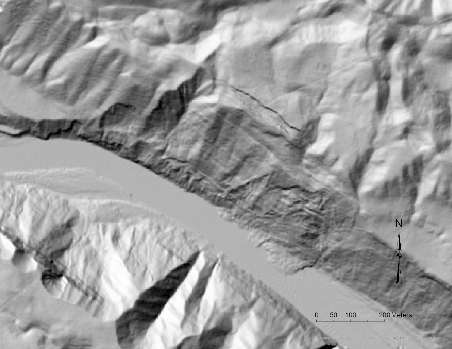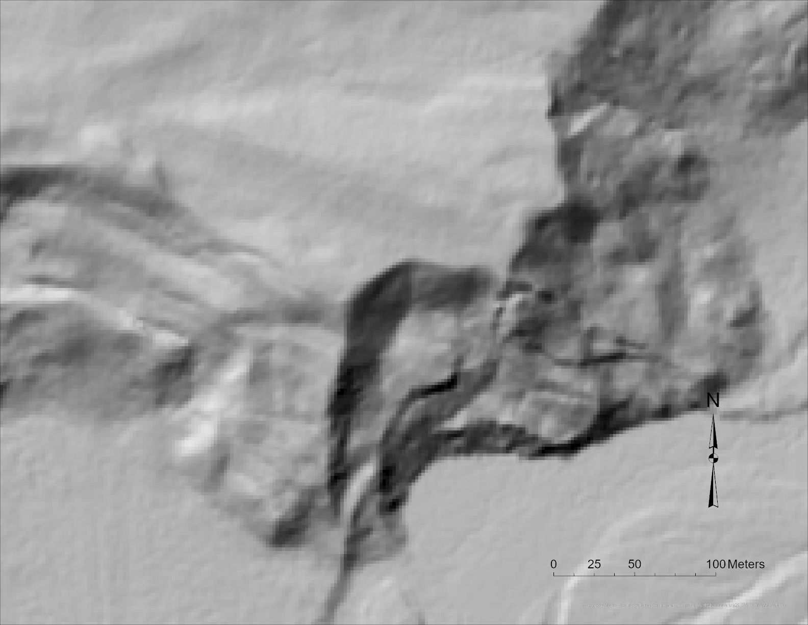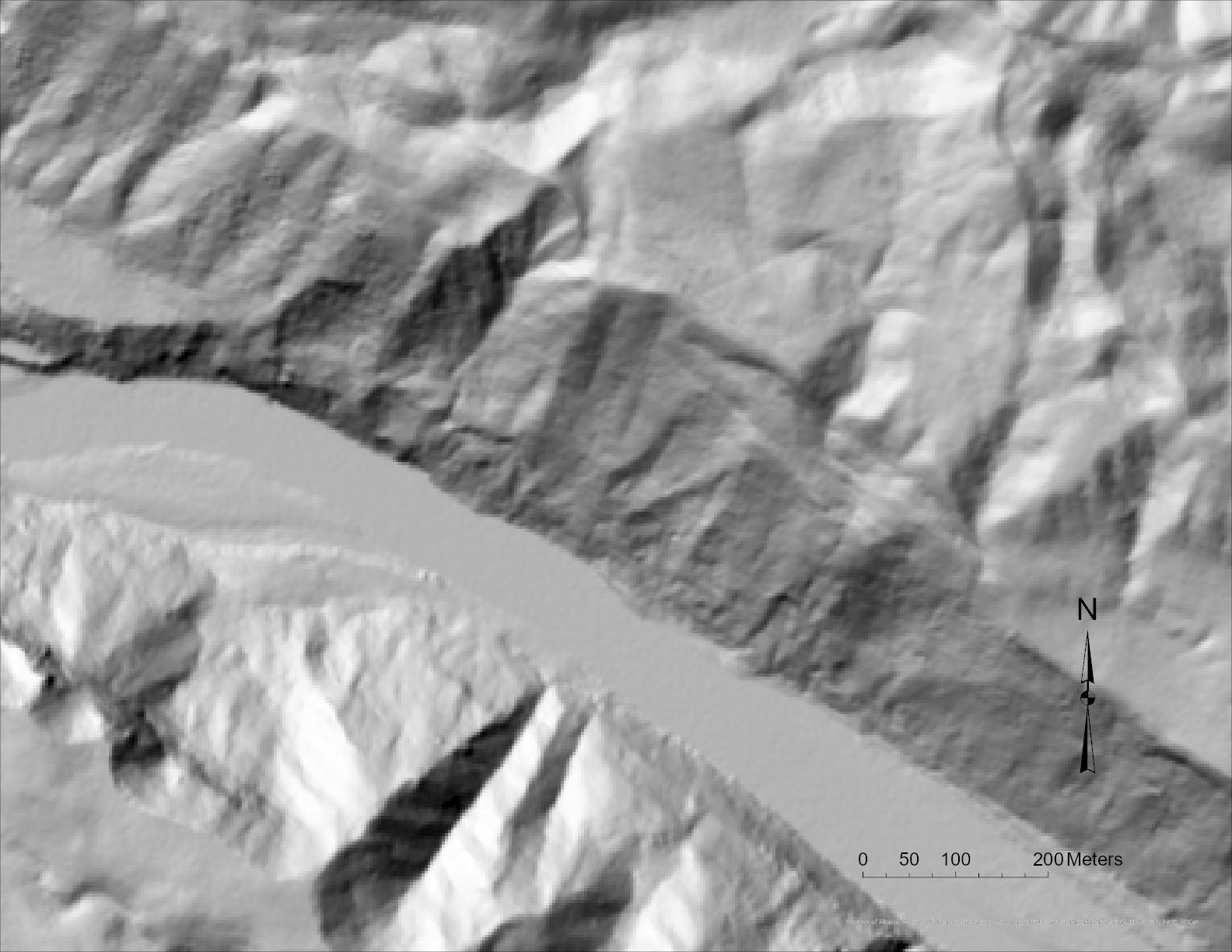 Drag the blue slider to compare two images. Check the box to toggle elevation change overlay.